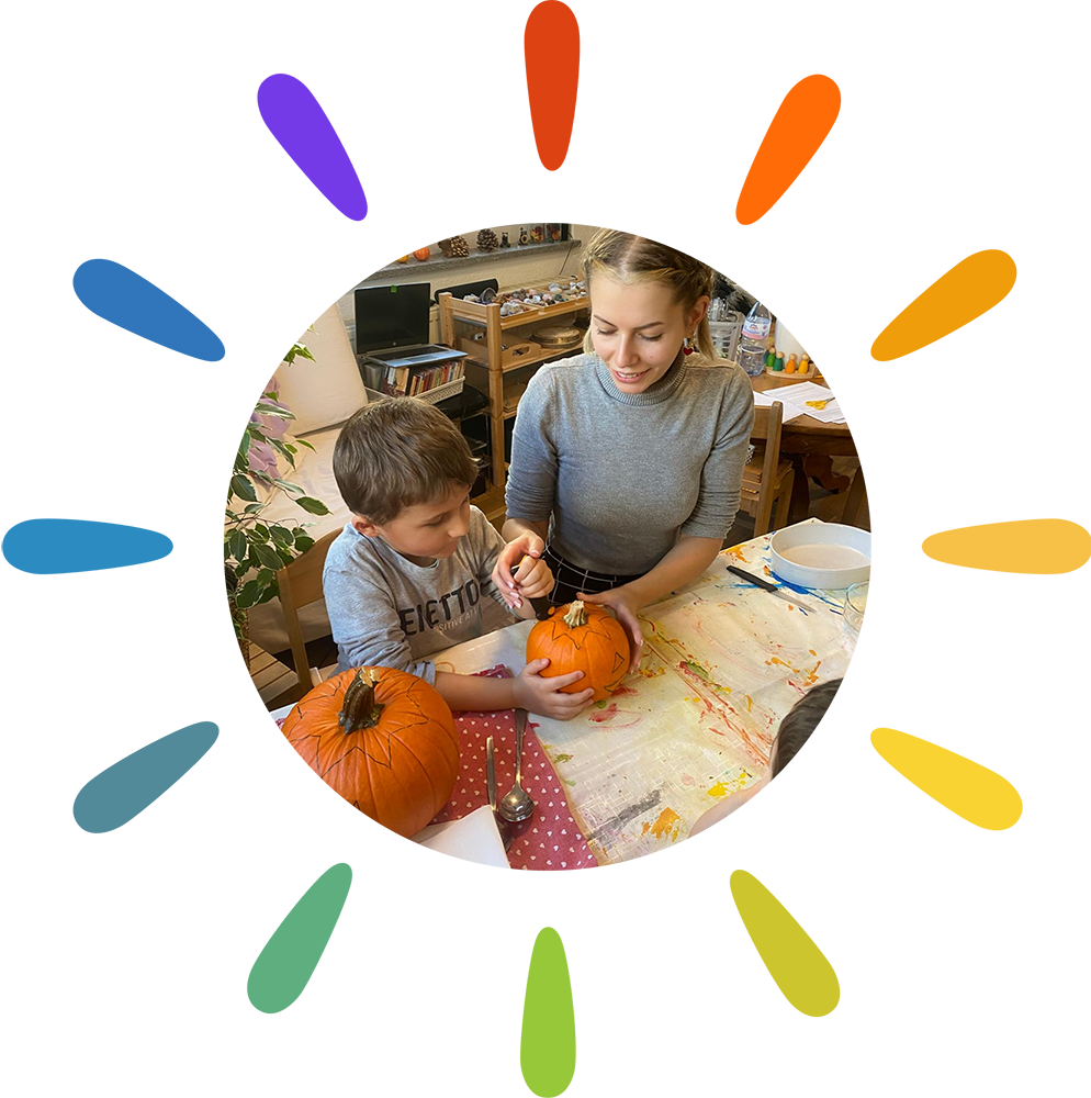 Kinder sollen bei uns zu fröhlichen, intelligenten, selbstbewussten, empathischen und sozial handelnden Mitgliedern unserer Gesellschaft heranwachsen dürfen. Und das unabhängig von kultureller, konfessioneller oder politischer Ausrichtung. Deshalb bieten wir im Alltag viele Möglichkeiten, aktiv zu werden – mit Montessori-Materialien, kreativen Angeboten und Naturerlebnissen. Der Wechsel aus freier Arbeit, gemeinschaftlichem Tun und Rückzugsmöglichkeiten schafft einen gesunden, ausgewogenen Tagesrhythmus.